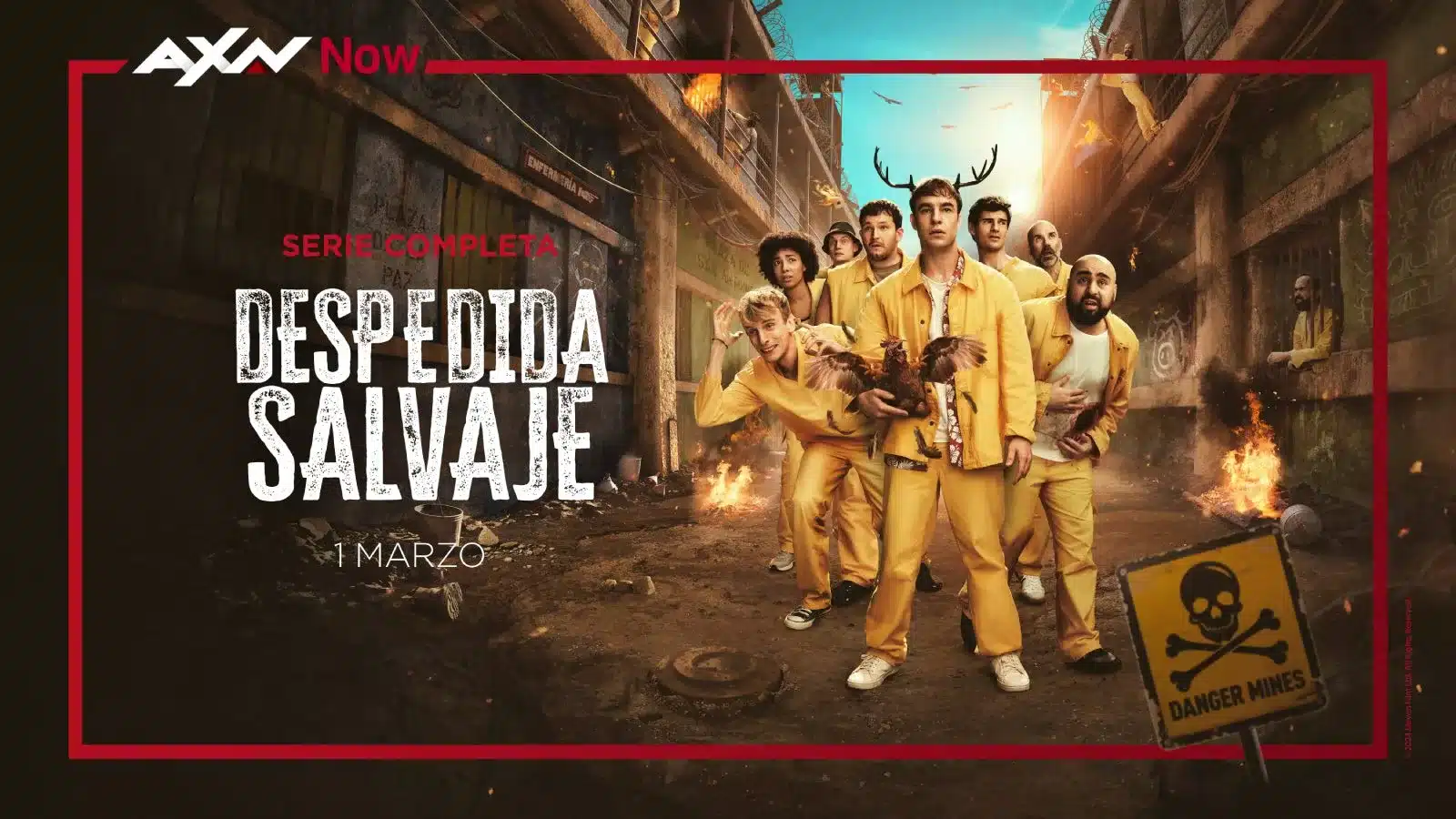 El próximo domingo 1 de marzo, AXN Now estrena en exclusiva la serie Despedida Salvaje. La serie comienza con la despedida de soltero de Stu en Sudamérica. Lo que apuntaba que iba a ser una fiesta memorable entre amigos se convierte en una pesadilla cuando, al volver a casa, son detenidos por tráfico de drogas y llevados a una prisión en una isla sin ley controlada por dos hermanos narcotraficantes.